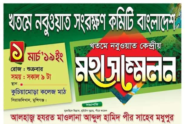 খতমে নবুওয়াত সংরক্ষণ কমিটির কেন্দ্রীয় মহাসম্মেলন ১ মার্চ