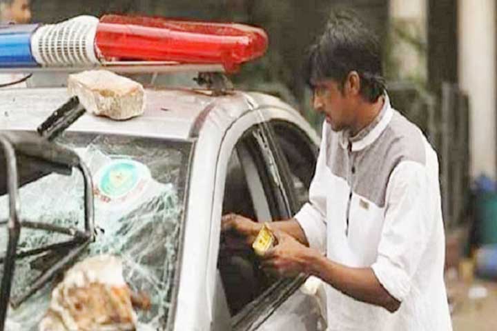 পুলিশের গাড়িতে আগুন দেয়া সেই যুবক গ্রেপ্তার