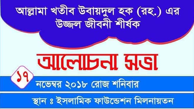 খতিব উবায়দুল হক রহ. এর জীবন শীর্ষক আলোচনাসভা কাল
