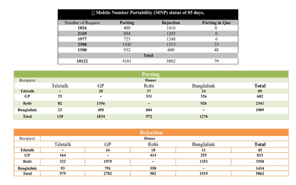 প্রথম পাঁচ দিনে অপারেটর বদলের আবেদন ১০,১২২ গ্রাহকের