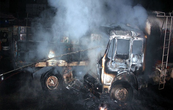 ইবি গেটে সংঘর্ষের পর দুই ট্রাক ভস্মীভূত