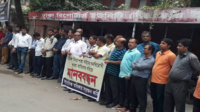 ডিজিটাল নিরাপত্তা আইন বাতিলের দাবিতে সাংবাদিকদের মানববন্ধন