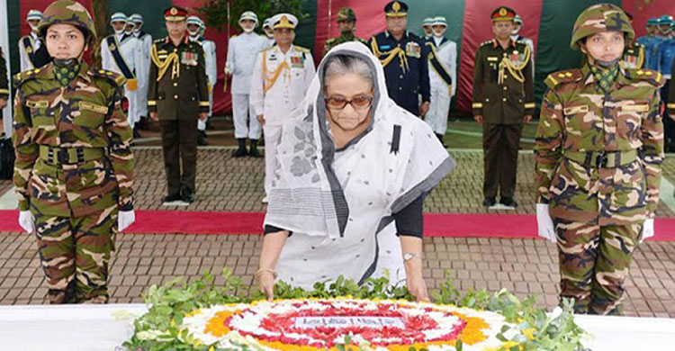 টুঙ্গিপাড়ায় বঙ্গবন্ধুর সমাধিতে প্রধানমন্ত্রীর শ্রদ্ধা