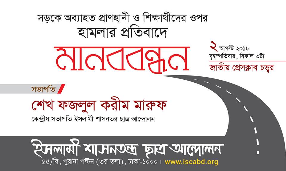 সড়ক দূর্ঘটনা ইস্যুতে ইশা ছাত্র আন্দোলনের মানববন্ধন কাল