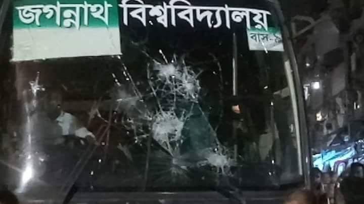 জবির শিক্ষকবাহী বাসে পরিবহন শ্রমিকদের হামলা-ভাঙচুর