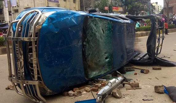 মিরপুরে পুলিশভ্যান উল্টে দিলো শিক্ষার্থীরা