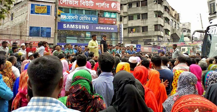 রামপুরায় বেতন-ভাতার দাবিতে শ্রমিকদের সড়ক অবরোধ