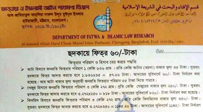 সর্বনিম্ন ফিতরা ৬০ টাকা : হাটহাজারী মাদরাসা