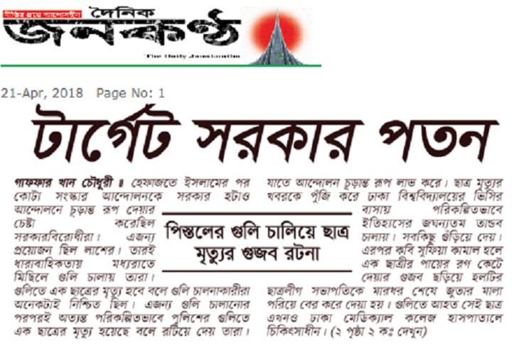 প্রকাশিত খবর আজ বিকেলের মধ্যে প্রত্যাহার না করলে জনকণ্ঠের বিরুদ্ধে আইনি ব্যবস্থা