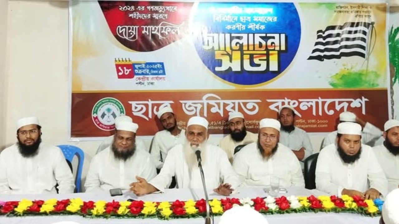 ছাত্র জমিয়তের উদ্যোগে গণঅভ্যুত্থানে শহীদদের স্মরণে ও আগামীর বাংলাদেশ বিনির্মাণে ছাত্র সমাজের করণীয় শীর্ষক আলোচনা সভা অনুষ্ঠিত হয়েছে। শুক্রবার (১৮ জুলাই) বিকেলে পল্টনস্থ কেন্দ্রীয় কার্যালয়ে এই সভা অনুষ্ঠিত হয়।
