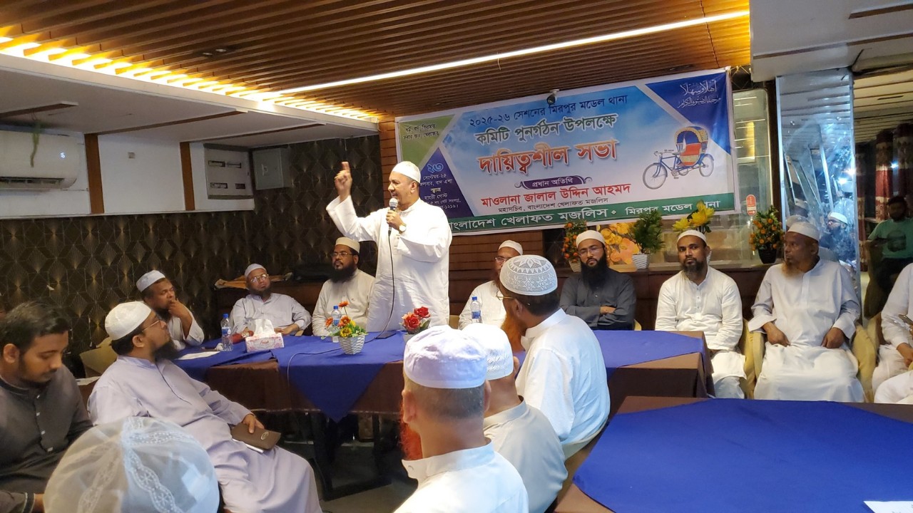 সভায় সভাপতিত্ব করেন মিরপুর মডেল থানা সভাপতি মাওলানা মুহাম্মাদ আব্দুল্লাহ নাটোরী এবং পরিচালনা করেন সাধারণ সম্পাদক এইচ এম খোকন।