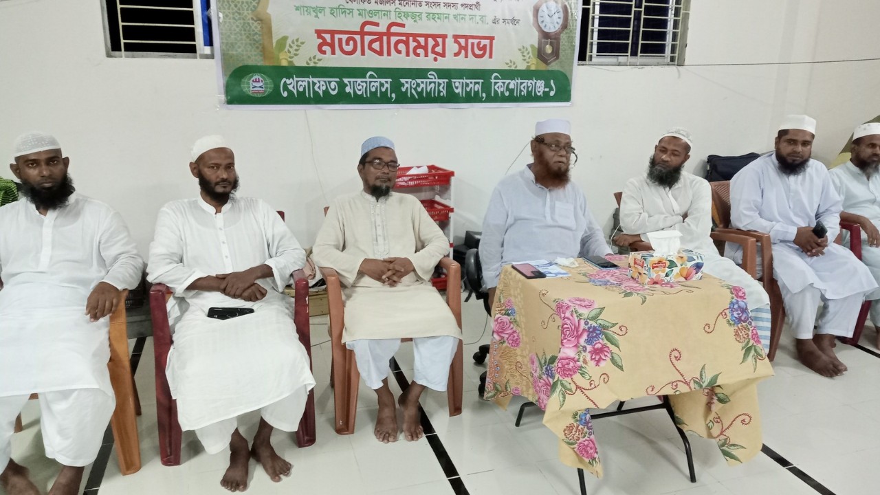 খেলাফত মজলিস কিশোরগঞ্জ জেলা শাখার সাধারণ সম্পাদক এমদাদুল্লাহর পরিচালনায় অনুষ্ঠিত মতবিনিময় সভায় অন্যান্যের মধ্যে বক্তব্য রাখেন ও উপস্থিত ছিলেন খেলাফত মজলিসের জেলা সহ সভাপতি মো. মজিবুর রহমান, আলহাজ্ব মাওলানা আবুল কাশেম, সহ সাধারণ সম্পাদক শামীম আহমদ, সাংগঠনিক সম্পাদক প্রভাষক হাফেজ মাওলানা আকরাম খন্দকার, প্রশিক্ষণ সম্পাদক মুফাসসির মাওলানা তোফাজ্জল হোসেন, বায়তুলমাল সম্পাদক মাওলানা অলীউর রহমান, কিশোরগঞ্জ শহর খেলাফত মজলিসের সভাপতি প্রভাষক হাফেজ মাওলানা আতাউর রহমান শাহান, মাদরাসা আবু হুরায়রার (রা.) শিক্ষা সচিব মাওলানা শহীদুল্লাহ্ ও সহকারী শিক্ষক হাফেজ মাওলানা বাকীবিল্লাহ্ প্রমুখ।