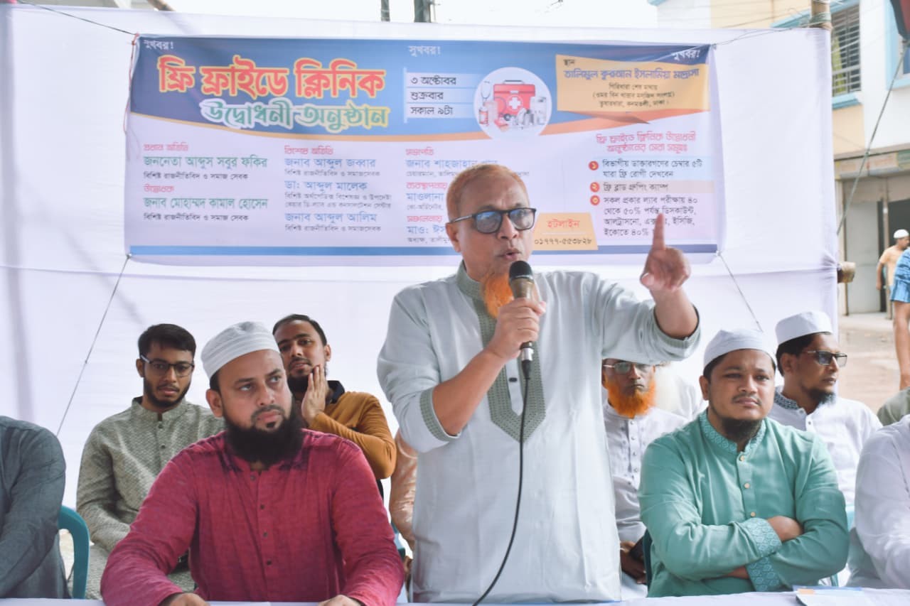 তালিমুল কুরআন ইসলামিয়া মাদ্রাসার চেয়ারম্যান শাহজাহান খানের সভাপতিত্বে ও মাদ্রাসার অধ্যক্ষ মাওলানা ঈসমাইল খাঁনের পরিচালনায় অনুষ্ঠানে বিশেষ অতিথি ছিলেন কেন্দ্রীয় মজলিশে শুরার সদস্য নারায়নগঞ্জ ৪ আসনের সংসদ সদস্য প্রার্থী আব্দুল জাব্বার, নারায়নগঞ্জ জেলা শুরা ও কর্মপরিষদ সদস্য মজিবুর রহমান মিয়াজী, ৬৫ নং ওয়ার্ডের কাউন্সিলর প্রার্থী আব্দুল আলিম। কেয়ার ডি- ল্যাব এন্ড কনসালটেশন সেন্টারের ব্যবস্থাপনায় ফ্রি ফ্রাইডে ক্লিনিকের উদ্বোধনী দিনে ৫ শতাধিক মানুষ ফ্রি চিকিৎসা সেবা গ্রহন করে।