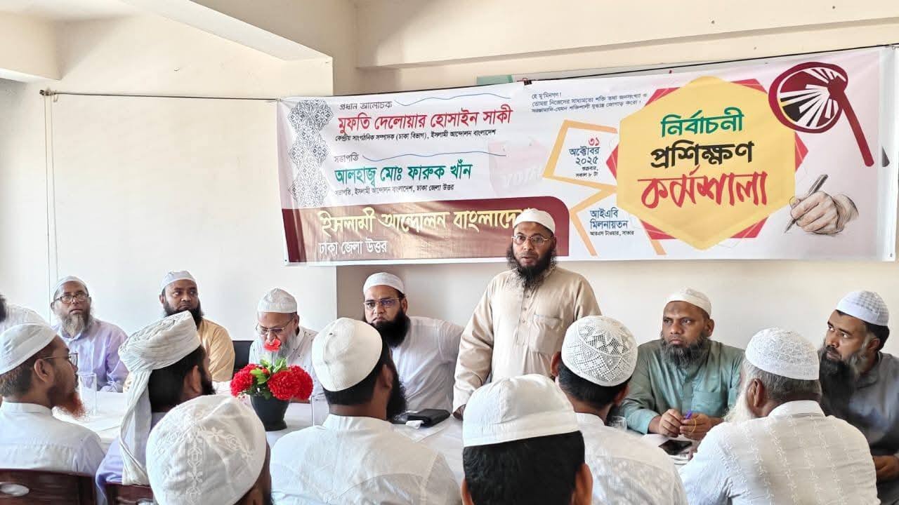 ইসলামী আন্দোলন বাংলাদেশ ঢাকা জেলা উত্তরের উদ্যোগে শুক্রবার (৩১ অক্টোবর) জেলা কার্যালয়ে (আরএস টাওয়ার) নির্বাচনি প্রশিক্ষণ কর্মশালা অনুষ্ঠিত হয়েছে।