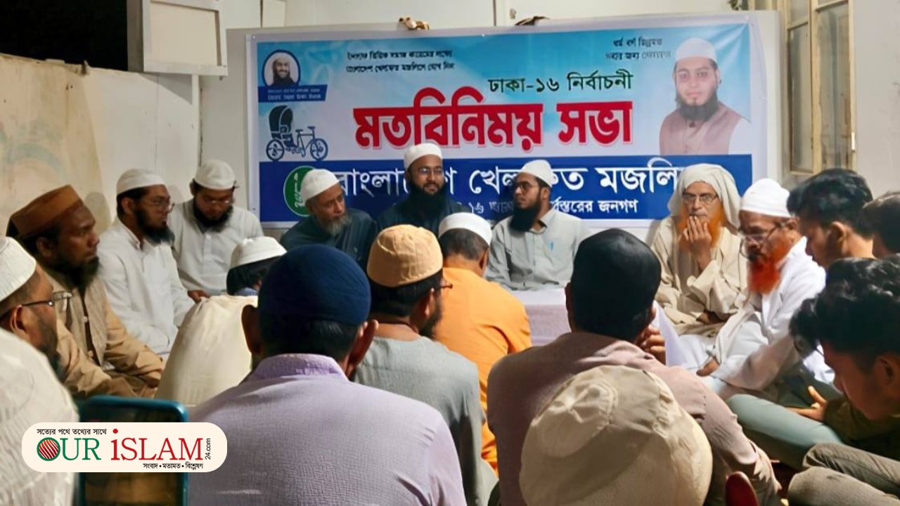 ঢাকা-১৬ সংসদীয় আসনে বাংলাদেশ খেলাফত মজলিস মনোনীত প্রার্থী মুফতি আহসানুল্লাহ কাসেমীর পরিচিতি ও মতবিনিময় সভা অনুষ্ঠিত হয়েছে।