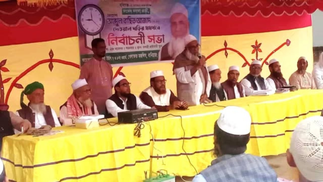 হবিগঞ্জ-০২ (বানিয়াচং -আজমিরীগঞ্জ) আসনে খেলাফত মজলিস মনোনীত সংসদ সদস্য প্রার্থী এবং সংগঠনের কেন্দ্রীয় আমির মাওলানা আব্দুল বাছিত আজাদ ও দেওয়াল ঘড়ি মার্কার সমর্থনে নির্বাচনী সভা অনুষ্ঠিত হয়েছে।