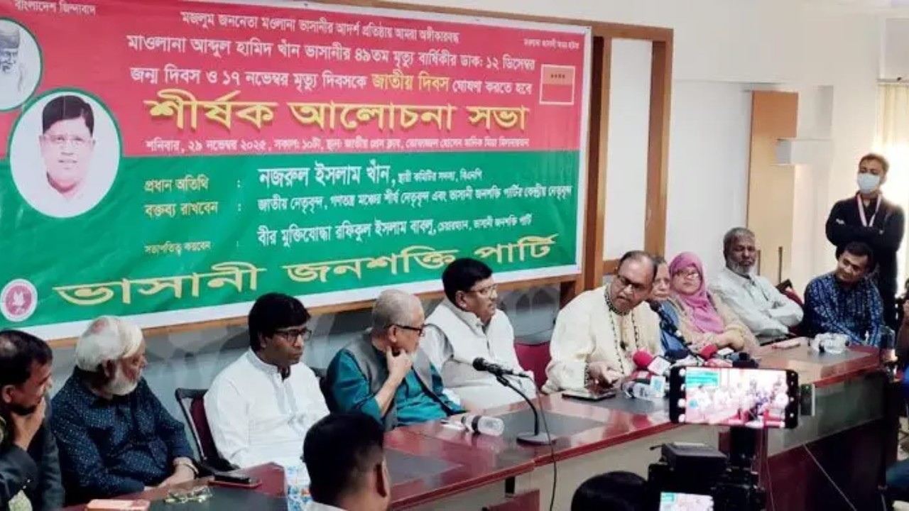 শনিবার (২৯ নভেম্বর) জাতীয় প্রেস ক্লাবে ভাসানী জনশক্তি পার্টি আয়োজিত আলোচনা সভায় তিনি এ কথা বলেন।