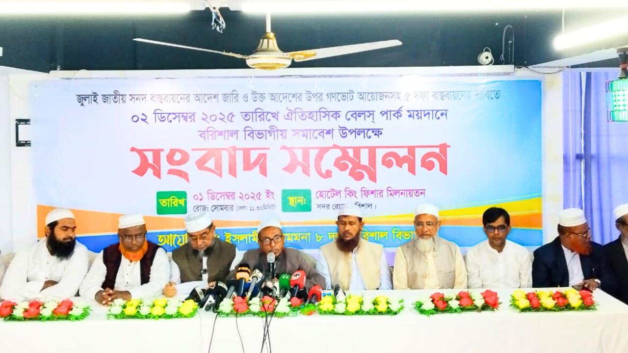 সোমবার (১ ডিসেম্বর) বরিশাল সদর রোডের হোটেল কিংফিশারে আয়োজিত এক সংবাদ সম্মেলনে আট দলের নেতারা সমাবেশের প্রস্তুতি ও সার্বিক বিষয়ে অবহিত করেন।