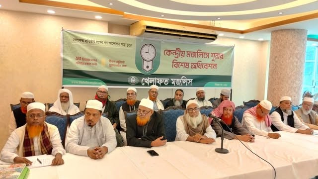 খেলাফত মজলিসের কেন্দ্রীয় মজলিসে শুরার বিশেষ অধিবেশনে নেতৃবৃন্দ উদ্বেগ প্রকাশ করে বলেছেন, তফসিল ঘোষিত হওয়ার পর ফ্যাসিবাদী অপশক্তি নির্বাচন বানচালে ষড়যন্ত্রে লিপ্ত হয়েছে। টার্গেট কিলিং ও নাশকতা চালিয়ে তারা দেশকে অস্থিতিশীল করতে চায়। জুলাই যোদ্ধা ওসমান হাদীকে হত্যার উদ্দেশ্যে গুলি চালিয়ে গণঅভ্যুত্থানের কন্ঠস্বরগুলোকে থামিয়ে দিতে চায়। কিন্তু দেশপ্রেমিক জনগণ তা কখনো হতে দিবে না, ইনশাআল্লাহ। জুলাই গণঅভ্যুত্থানের পক্ষের সকল শক্তি ঐক্যবদ্ধ আছে। আমরা অবিলম্বে ওসমান হাদীকে গুলিবিদ্ধকারী ও তার নিদের্শদাতাকে গ্রেফতার দেখতে চাই।