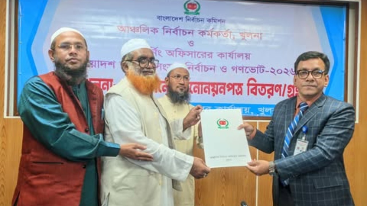 আজ বৃহস্পতিবার, ১৮ ডিসেম্বর ২০২৫, বেলা ১২টায় খুলনা আঞ্চলিক নির্বাচন কমিশন কার্যালয়ে আঞ্চলিক নির্বাচন কর্মকর্তা ও রিটার্নিং কর্মকর্তা ফয়সাল কাদের–এর থেকে হাফেজ মাওলানা আব্দুল আউয়ালের পক্ষে মনোনয়ন পত্র সংগ্রহ করা হয়।