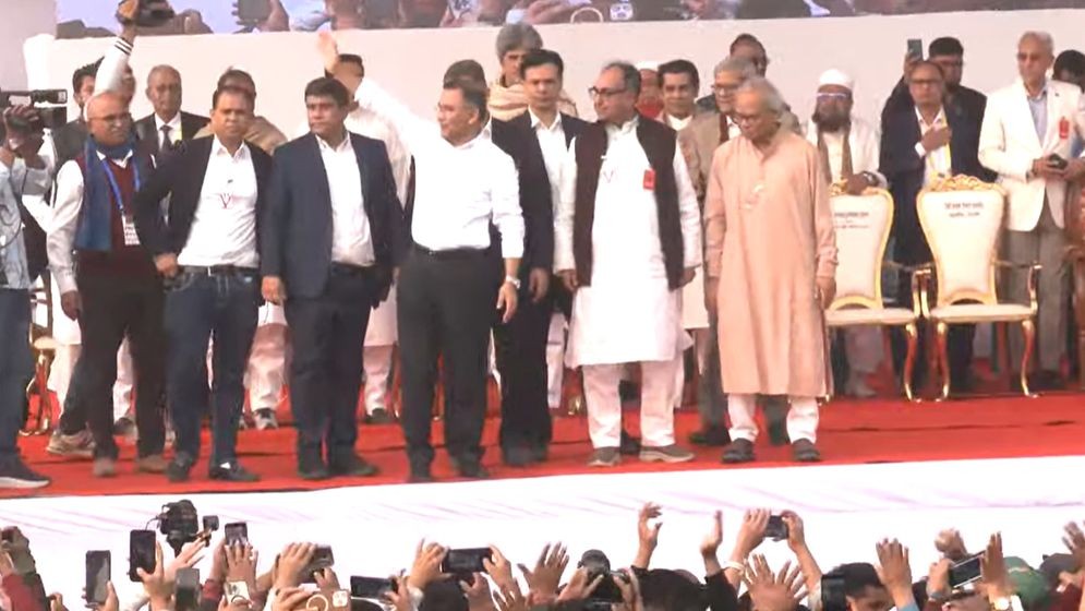 রাজধানীর পূর্বাচলের জুলাই ৩৬ এক্সপ্রেসওয়ের (৩০০ ফিট এলাকা) সংবর্ধনাস্থলে পৌঁছেছেন বিএনপির ভারপ্রাপ্ত চেয়ারম্যান তারেক রহমান। এ সময় লাখ লাখ নেতাকর্মী তাকে অভিবাদন জানান। তিনিও হাত নেড়ে নেতাকর্মীদের অভিবাদনের জবাব দেন।
