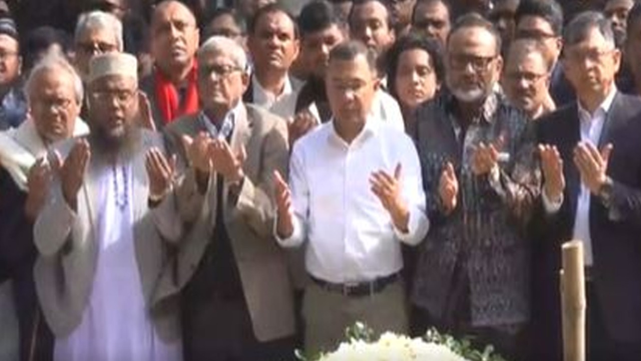 ওসমান হাদির কবরে ফুল দিয়ে সেখানে হাদিসহ সকল জুলাই শহীদদের জন্য দোয়া করা হয়।