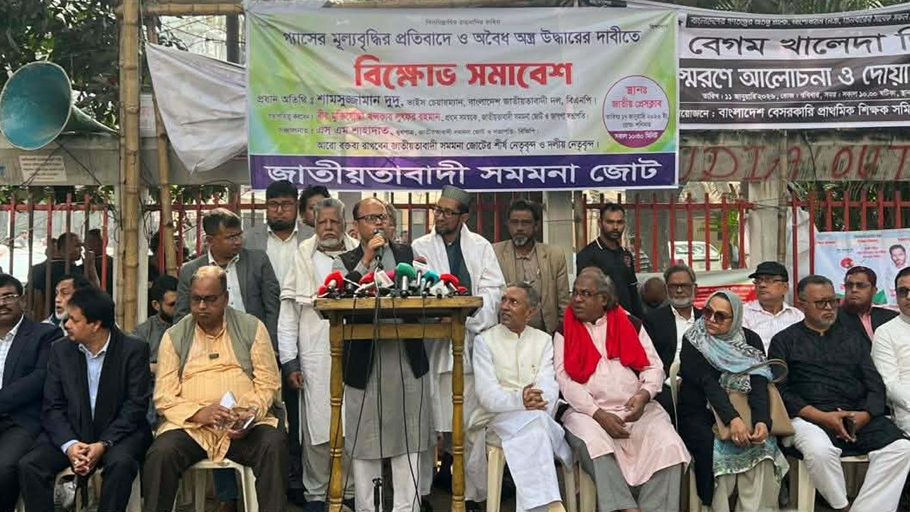 শনিবার (১৭ জানুয়ারি) জাতীয় প্রেস ক্লাবের সামনে জাতীয়তাবাদী সমমনা জোটের উদ্যোগে গ্যাসের মূল্যবৃদ্ধির প্রতিবাদে ও অবৈধ অস্ত্র উদ্ধারের দাবিতে এক বিক্ষোভ সমাবেশে তিনি এসব কথা বলেন।