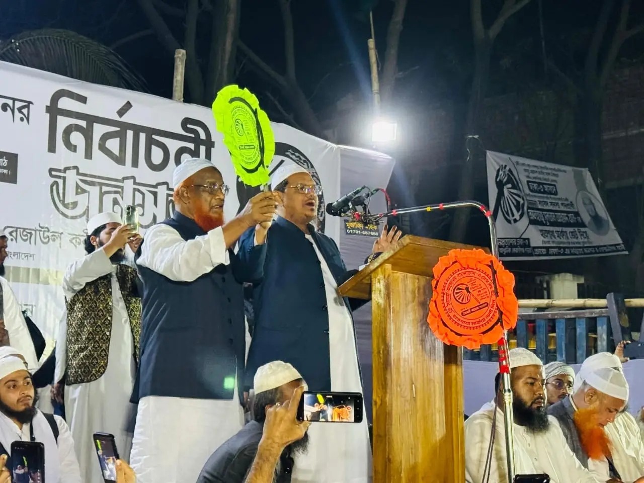 ঢাকেশ্বরী মন্দিরের পাশে আব্দুল আলীম খেলার মাঠে আয়োজিত সমাবেশে পীর সাহেব চরমোনাই বলেন, আমাদের রাজনীতি মানুষের কল্যাণের জন্য, দেশের জন্য ও জাতির জন্য কাজ করে যাচ্ছে। রাজনৈতিক প্রলোভন এড়িয়ে আমরা নীতি ও আদর্শে অটল-অবিচল থেকে কাজ করে যাচ্ছি। ইসলামের জন্য একক ভোট বাক্স নিয়ে আপনাদের কাছে হাজির হয়েছি। যারা ইসলামকে ভালোবাসেন, যারা দেশের কল্যাণ চান, যারা চান বাংলাদেশ বিশ্ব দরবারে মাথা উঁচু করে দাড়াক তারা হাতপাখা প্রতিকে ভোট দিন। কথা দিচ্ছি, হাতপাখা বিজয়ী হলে স্বাধীনতার প্রত্যাশা পূরণ হবে। জুলাইয়ের আকাঙ্ক্ষা বাস্তবায়ন হবে; ইনশাআল্লাহ।