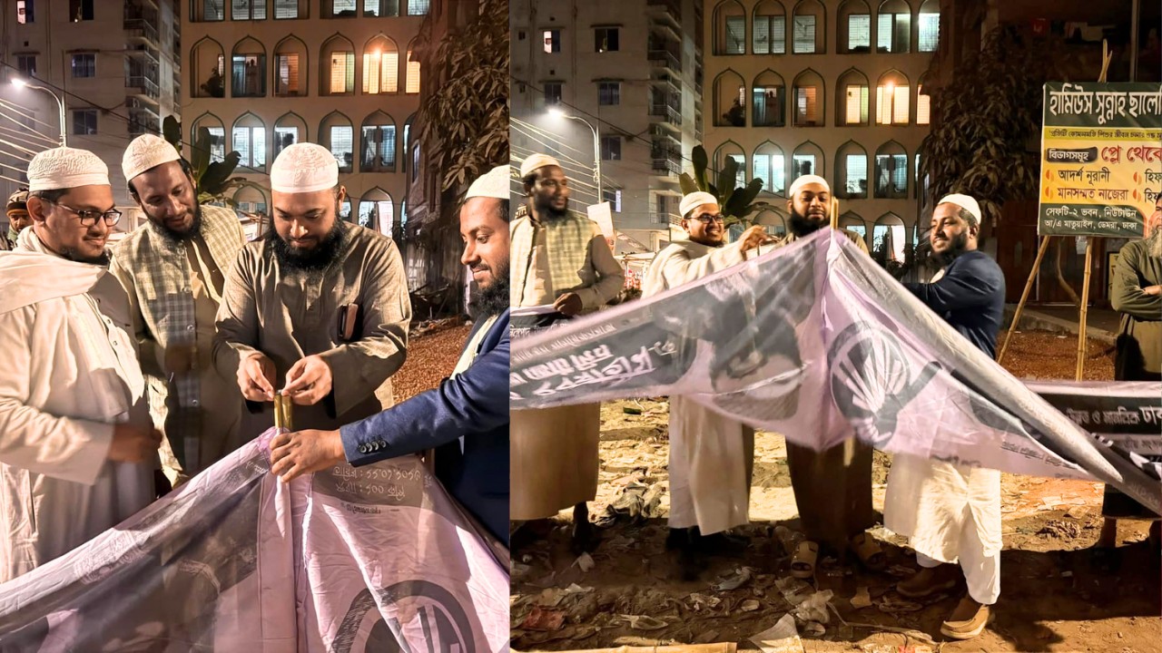 ঢাকা-৫ আসনে হাজী মো. ইবরাহীমের নির্বাচনী কার্যক্রমের অংশ হিসেবে আলেম-ওলামাদের নেতৃত্বে রাতভর হাতপাখার ব্যানার সাঁটানোর কর্মসূচি অনুষ্ঠিত হয়েছে।