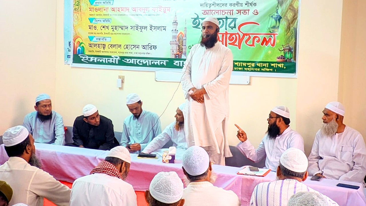 সোমবার (২ মার্চ) বিকেলে ইসলামী আন্দোলন বাংলাদেশ ঢাকা মহানগর দক্ষিণের শ্যামপুর থানা শাখার উদ্যোগে জুরাইনস্থ একটি মাদরাসা মিলনায়তনে ‘মাহে রমাযানের শিক্ষা’ শীর্ষক আলোচনা সভা ও ইফতার মাহফিলে প্রধান অতিথির বক্তব্যে তিনি এসব কথা বলেন।