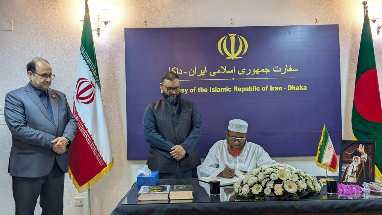 শুক্রবার (৬ মার্চ) ঢাকার ইরান দূতাবাসে সংরক্ষিত খোলা শোক বইতে তিনি স্বাক্ষর করেছেন। শোক বইতে স্বাক্ষরের সময় তিনি বাংলাদেশ জামায়াতে ইসলামীর পক্ষ থেকে ইরানের সরকার ও জনগণের প্রতি গভীর সমবেদনা জ্ঞাপন করেন।