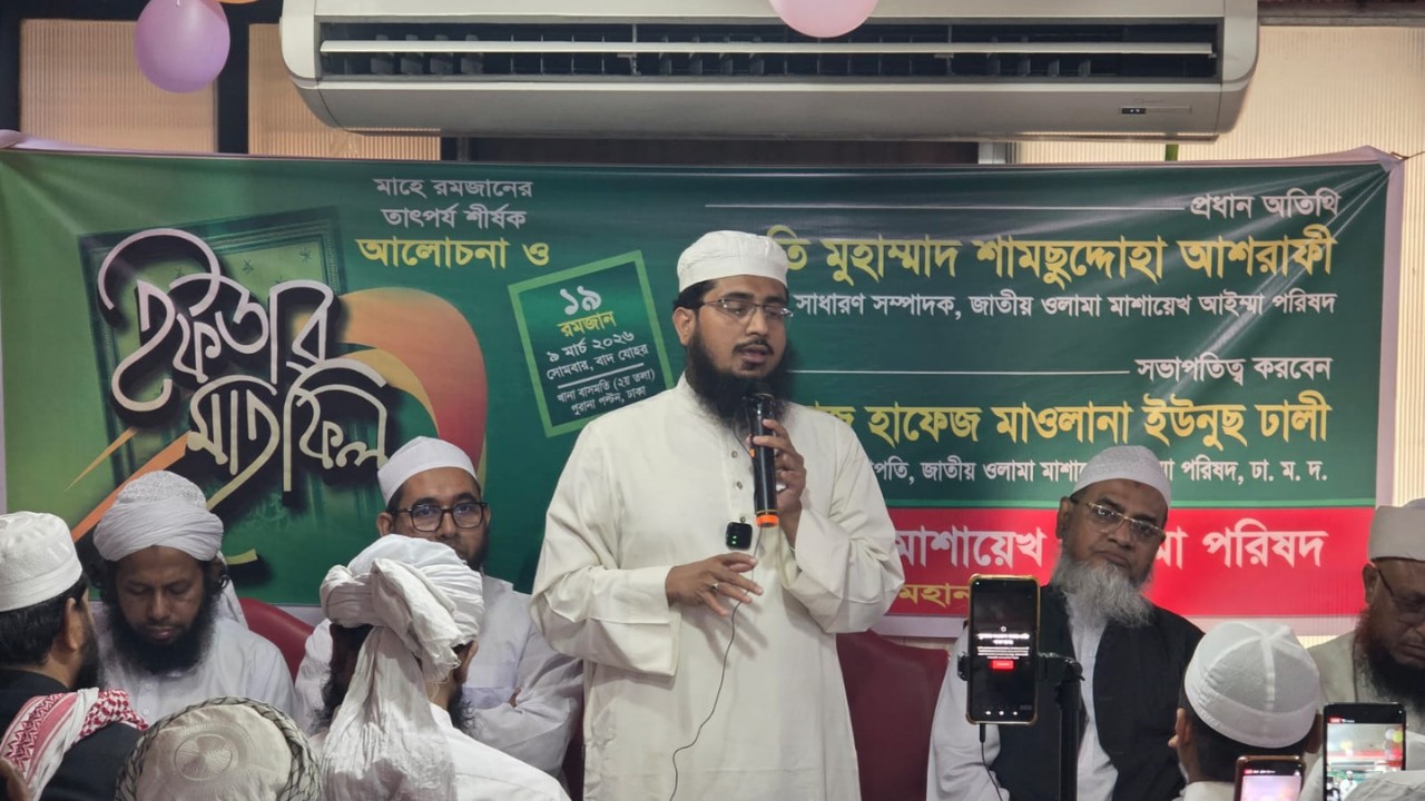 জাতীয় উলামা-মাশায়েখ আইম্মা পরিষদ, ঢাকা দক্ষিণের সভাপতি মাওলানা ইউনুস ঢালির সভাপতিত্বে অনুষ্ঠিত ইফতার মাহফিল বিশেষ অতিথির বক্তব্য রাখেন ইসলামী আন্দোলন বাংলাদেশ, ঢাকা মহানগর দক্ষিণের ভারপ্রাপ্ত সভাপতি মাওলানা আহমদ আব্দুল কাইয়ুম, জাতীয় উলামা-মাশায়েখ আইম্মা পরিষদের সহ সাধারণ সম্পাদক মাওলানা হেমায়েতুল্লাহ কাসেমীসহ নেতৃবৃন্দ।