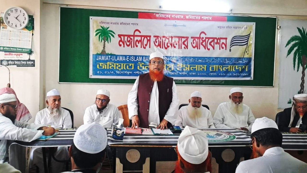 সোমবার (৯ মার্চ) রাজধানীর পুরানা পল্টনে জমিয়তে উলামায়ে ইসলাম বাংলাদেশের মজলিসে আমেলার অধিবেশন কেন্দ্রীয় কার্যালয়ে দলের সভাপতি শাইখুল হাদিস মাওলানা উবায়দুল্লাহ ফারুকের সভাপতিত্বে ও মহাসচিব মাওলানা মঞ্জুরুল ইসলাম আফেন্দীর পরিচালনায় অনুষ্ঠিত সভায় এই নির্দেশ প্রদান করা হয়।