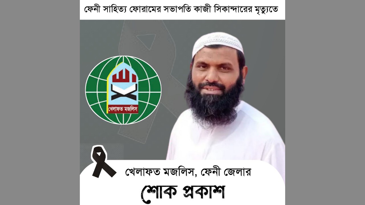 ফেনী সাহিত্য ফোরামের সভাপতি এবং বাংলাদেশ ইসলামি লেখক ফোরামের আইন ও সমাজ কল্যাণ সম্পাদক কাজী সিকান্দারের আকস্মিক ইন্তেকালে গভীর শোক ও দুঃখ প্রকাশ করেছেন খেলাফত মজলিস ফেনী জেলা শাখার নেতারা।