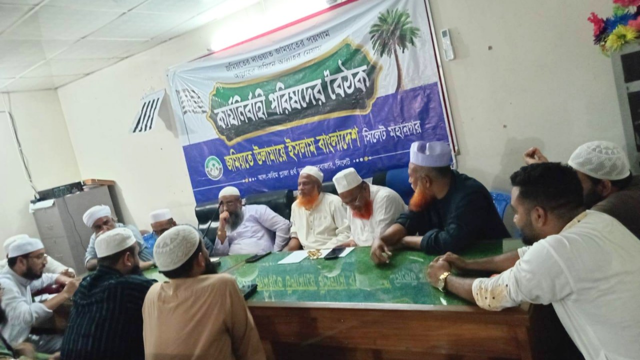 জমিয়তে উলামায়ে ইসলাম বাংলাদেশ, সিলেট মহানগরীর কার্যনির্বাহী পরিষদের বৈঠক সোমবার (৩০ মার্চ) বিকালে বন্দরবাজারস্থ দলীয় কার্যালয়ে অনুষ্ঠিত হয়। মহানগর শাখার ভারপ্রাপ্ত সভাপতি মাওলানা নিজাম উদ্দিন সাহেবের সভাপতিত্বে সভা শুরু হয় পবিত্র কালামে পাক থেকে তেলাওয়াতের মাধ্যমে, যা পাঠ করেন মহানগর প্রশিক্ষণ সম্পাদক মুফতি মাওলানা জাকারিয়া মাহমুদ।