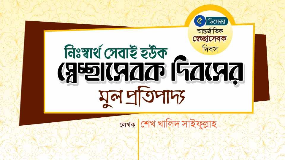 ৫ ডিসেম্বর বিশ্বব্যাপি পালিত হবে বিশ্ব স্বেচ্ছাসেবক দিবস। ১৯৮৫ সাল থেকে দিবসটি পালিত হচ্ছে। পৃথিবীর আনাচে কানাচে ছড়িয়ে ছিটিয়ে থাকা স্বেচ্ছাসেবী সংগঠনগুলো নানা কার্যক্রমের মধ্য দিয়ে দিবসটি উদযাপন করে। এ দিবস পালনের উদ্দেশ্য হলো সমাজে স্বেচ্ছাসেবকদের অবদান ও বিভিন্ন ক্ষেত্রে তাদের আন্তরিক প্রচেষ্টার কথা জনসাধারণকে মনে করিয়ে দেয়া। স্বেচ্ছাসেবীরা সমাজের বন্ধু ও পরম হিতৈষী। দেশের বিভিন্ন সমস্যা ও দুর্যোগে তাদের বেশ ভূমিকা রয়েছে।জনসেবার ব্রত নিয়ে আর্তমানবতার জন্য দেশ থেকে দারিদ্র্য দূরীকরণ, মানবাধিকার প্রতিষ্ঠা,স্বাস্থ্য-শিক্ষা প্রভৃতি ক্ষেত্রে উন্নয়নের কথা বলা। শুধু কি তাই? সমাজকে শান্তি ও সম্প্রীতির বন্ধনে গাঁথতে তাদের অব্যাহত প্রচেষ্টাও অতুলনীয়।