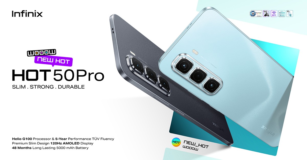 তরুণদের পছন্দের প্রযুক্তি ব্র্যান্ড ইনফিনিক্স বাংলাদেশে তাদের হট ৫০ সিরিজের নতুন ফোন ‘ইনফিনিক্স হট ৫০ প্রো’ উন্মোচন করেছে। প্রিমিয়াম ডিজাইনের এই ডিভাইসটি দেখতে স্লিম ও টেকসই। হট সিরিজের নতুন এই ফোনে এবার যুক্ত করা হয়েছে মিডিয়া টেক হেলিও জি১০০ প্রসেসর; যা গেমিংয়ের সময় দীর্ঘস্থায়ী ও শক্তিশালী পারফরম্যান্স দেবে। একইসাথে ফোনটিকে বাজারের অন্যতম সেরা বাজেট গেমিং ফোনে পরিণত করবে।