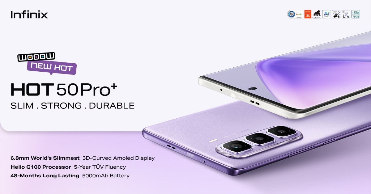 ‘হট ৫০ প্রো প্লাস’ স্মার্টফোন এনেছে ইনফিনিক্স, যা প্রতিষ্ঠানটির ইতিহাসে সবচেয়ে স্লিম স্মার্টফোন। ডিভাইসটিতে টাইটানউইং আর্কিটেকচার ডিজাইন যুক্ত করা হয়েছে, যা স্লিম ও টেকসই বিষয়টিকে একত্র করেছে।