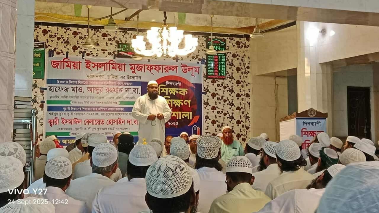 কুমিল্লা জেলাধীন মুরাদনগর উপজেলার সদরে সারাদিন ব্যাপী শিক্ষক প্রশিক্ষণ কর্মশালা অনুষ্ঠিত হয়েছে। ২৪ সেপ্টেম্বর বুধবার প্রাচীনতম দ্বীনি শিক্ষা প্রতিষ্ঠান জামিয়া ইসলামিয়া মুজাফফারুল উলূম মুরাদনগরে অনুষ্ঠানটি সম্পন্ন হয়েছে।